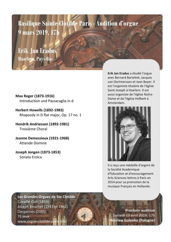 maart 8, 2019 Concert Ste Clotilde Parijs 9 maart 2019 om 17.00 uur Geplaatst in Uncategorized 1 reactie