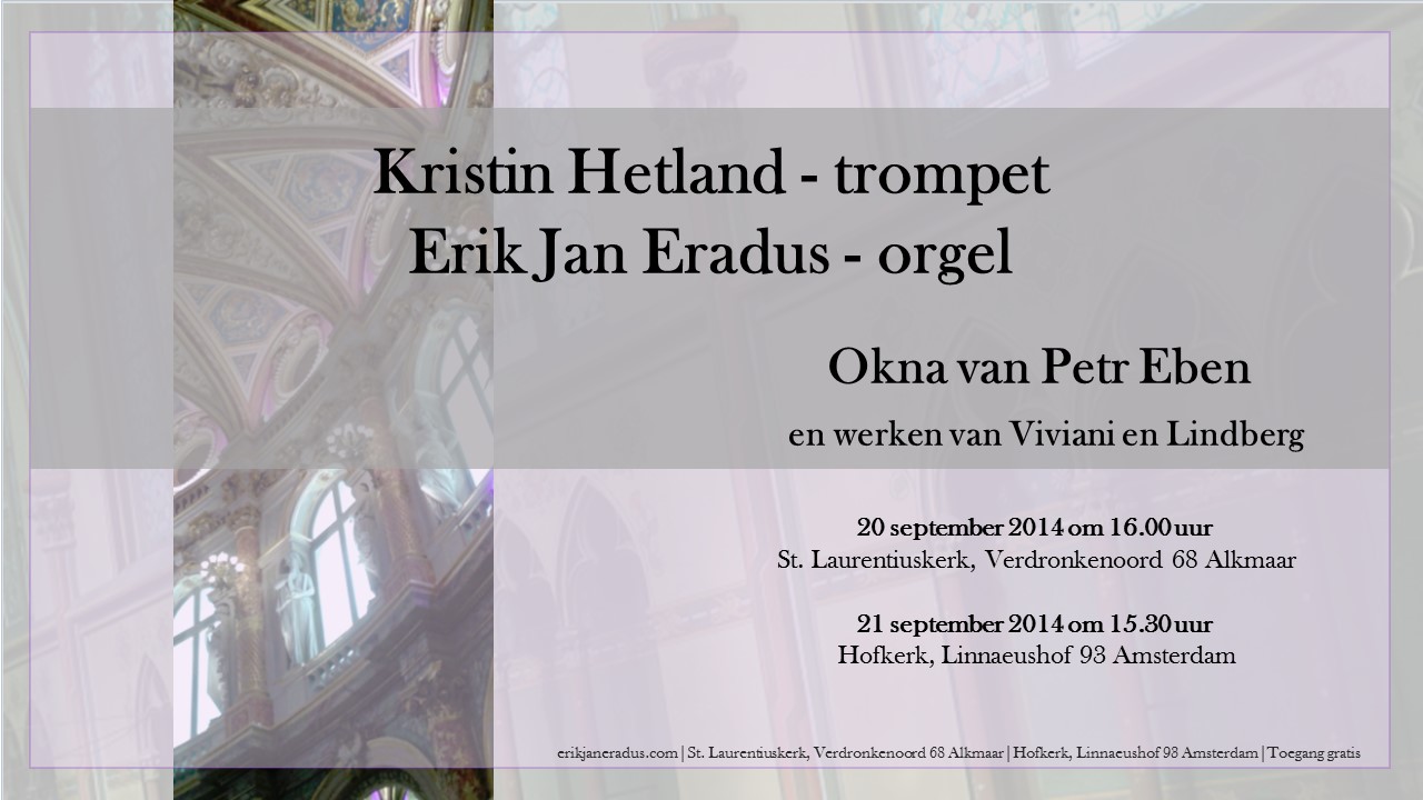 22 september 2013 om 15.30 uur Hofkerk, Linnaeushof 93 Amsterdam